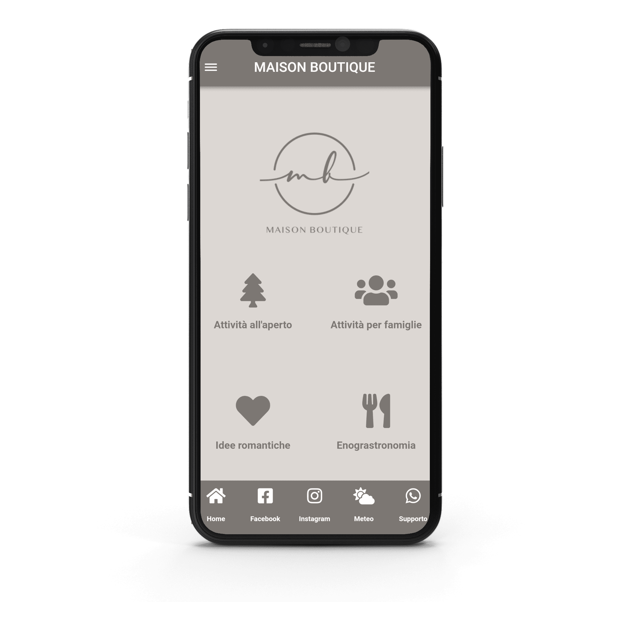 Maison Boutique ha sviluppato per i propri ospiti una app in grado di fornire tutte le attrazioni ed i punti d’interesse scelti con cura nelle vicinanze delle nostre strutture. Una coccola in più per i nostri clienti! Pochi giorni prima del check-in riceverete un e-mail per poter scaricare la nostra utilissima app!
